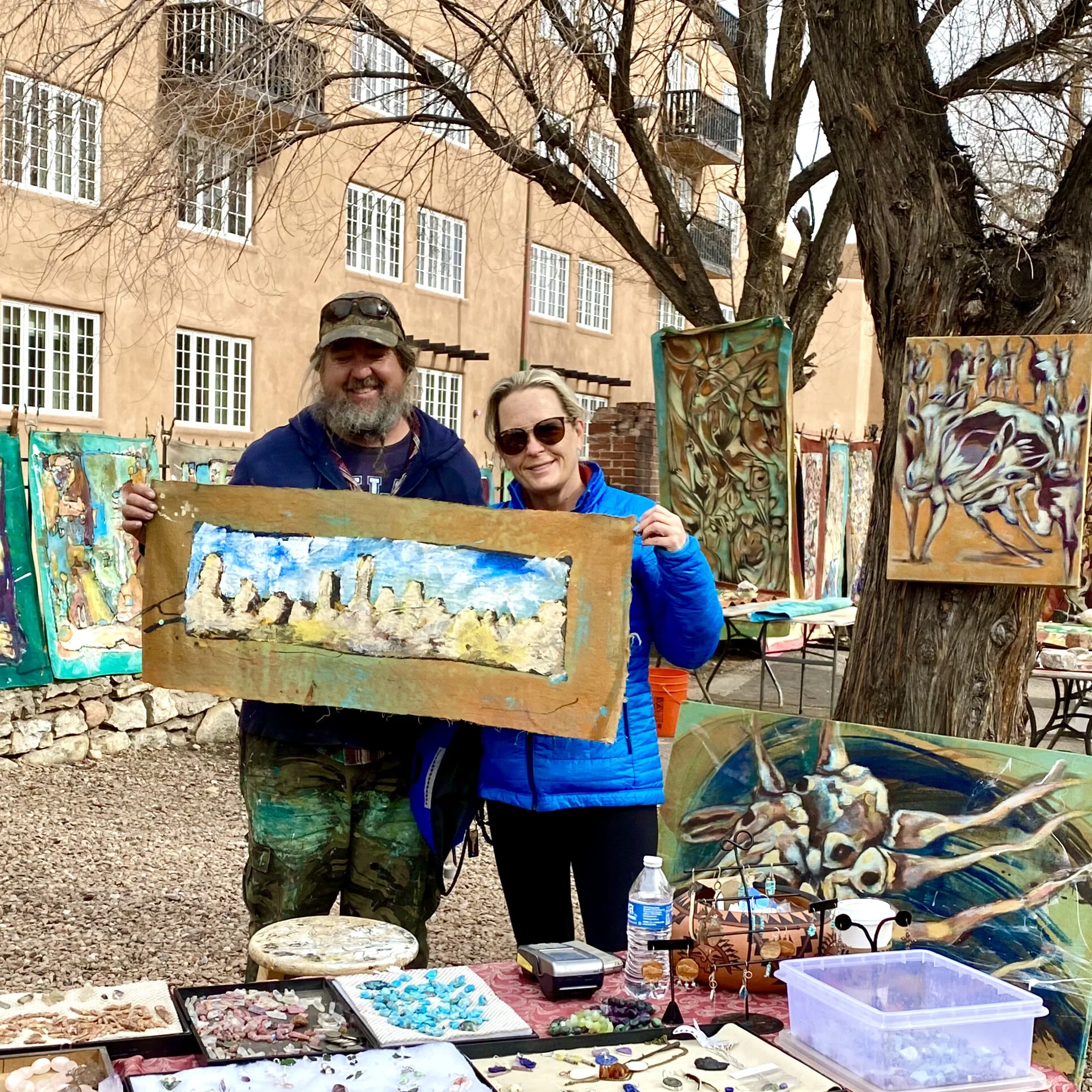 Randall paints and makes southwestern-style jewelry. I enjoyed spending a good half an hour chatting with him on a couple of different occasions. From Randall I learned of the Plaza Blanca, a stunning landscape that loosely inspired some of his artistic works (including the painting I bought!).